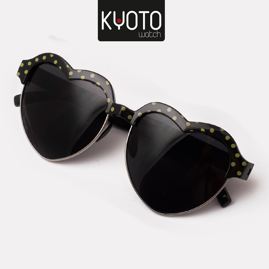 ACC856-2 – GAFAS KIDS FILTRO UV CORAZON COLOR NEGRA PUNTOS VERDES