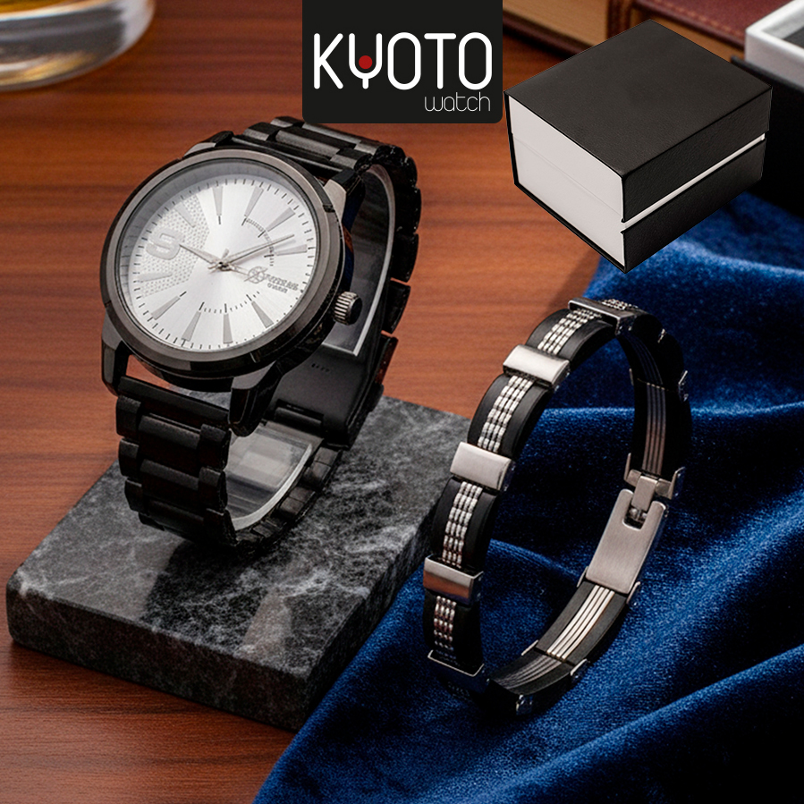 KY10-48 -SET RELOJ XTREME CABALLERO NEGRO CON PULCERA DE ACERO, CAJA